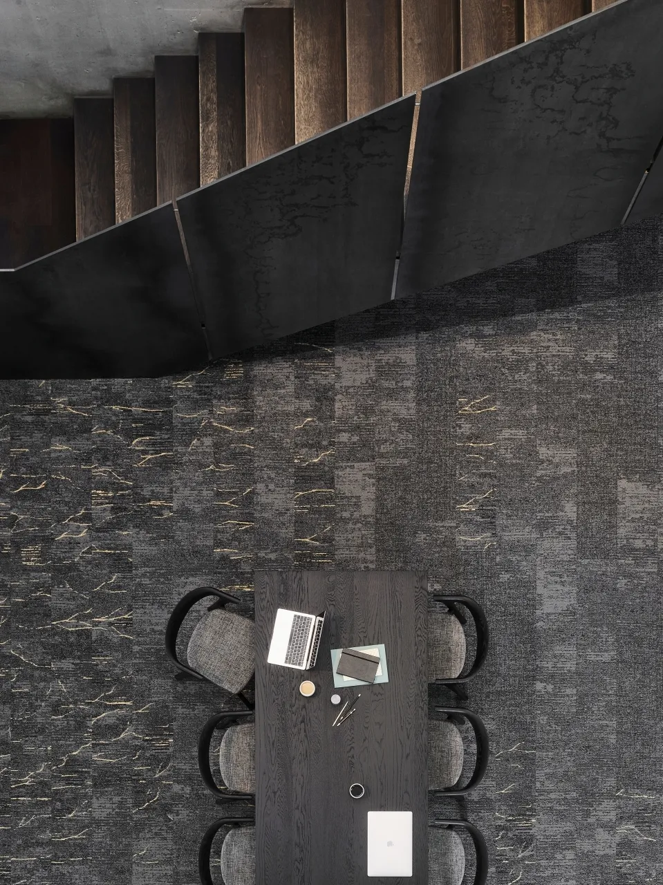 Дизайн ковровой плитки Imperfection Grit Echo 959 отличается особой изысканностью и уникальностью. Ее поверхность имеет рельефную текстуру, напоминающую гранит. Это придает полу оригинальный и современный вид, который привлекает внимание и создает уютную атмосферу в помещении. Ковровая плитка доступна в нескольких оттенках серого, что позволяет выбрать подходящий вариант под любой интерьер.