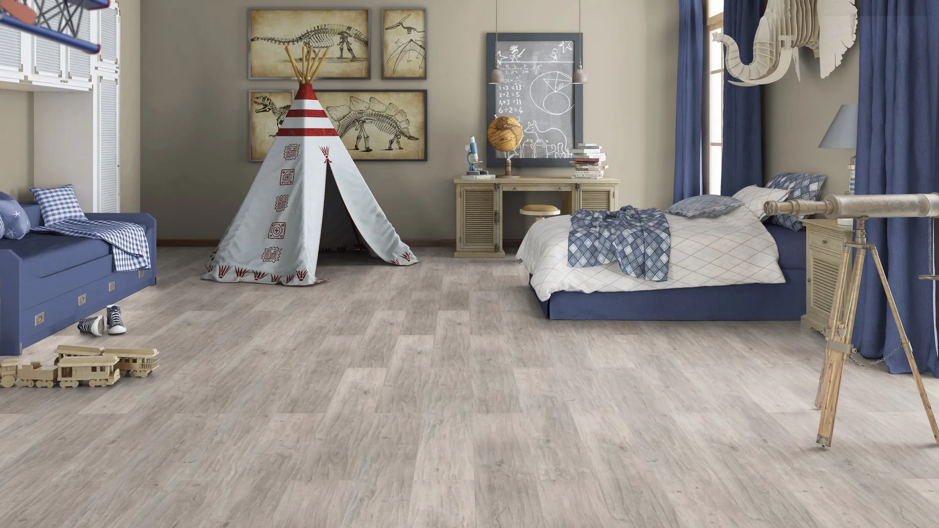 Ламинат Tarkett Boheme произведен в России с применением современных технологий. Замковая система обеспечивает быструю и надежную укладку без использования клея. 4-сторонняя фаска создает эффект натуральной доски и маскирует мелкие неровности основания.