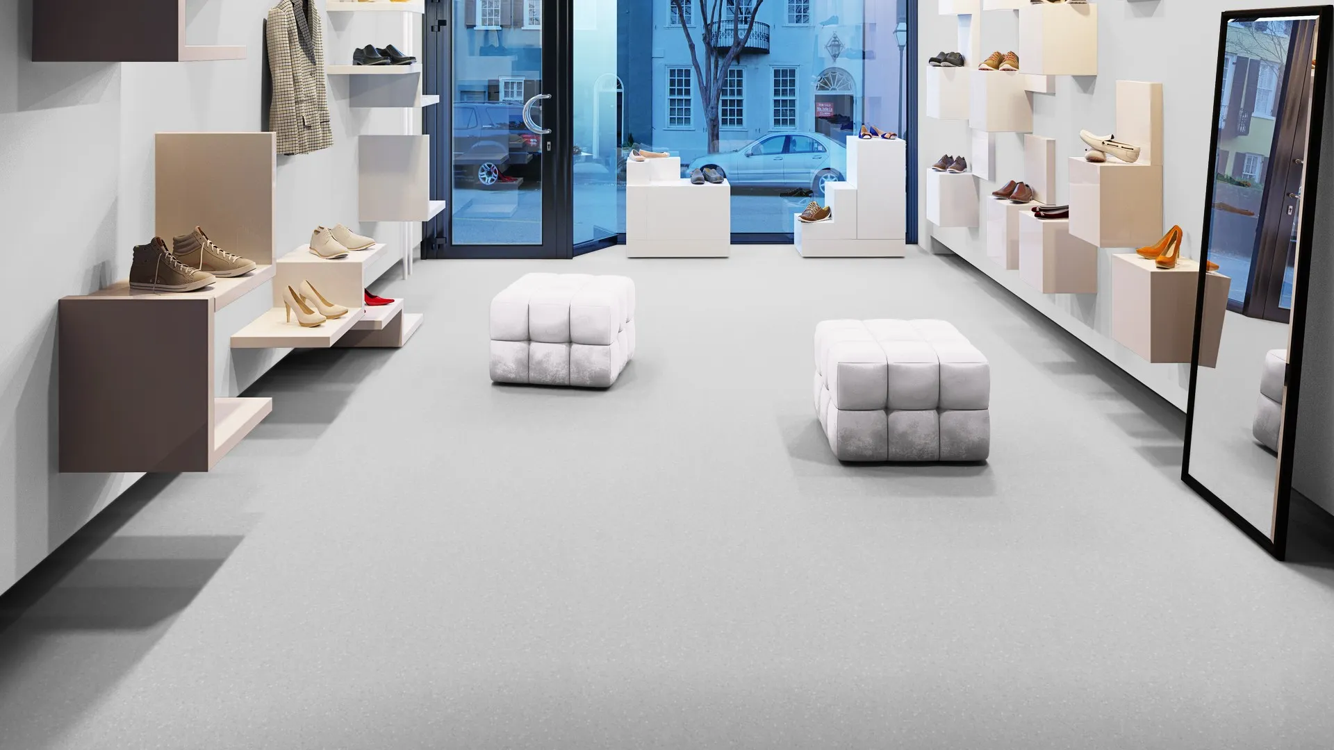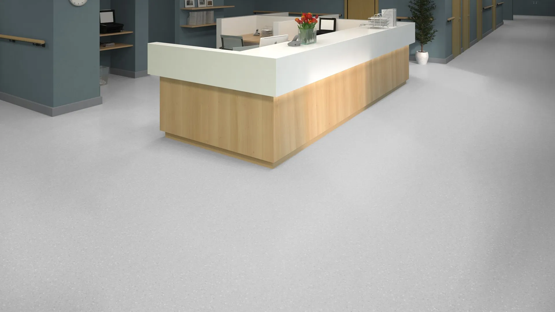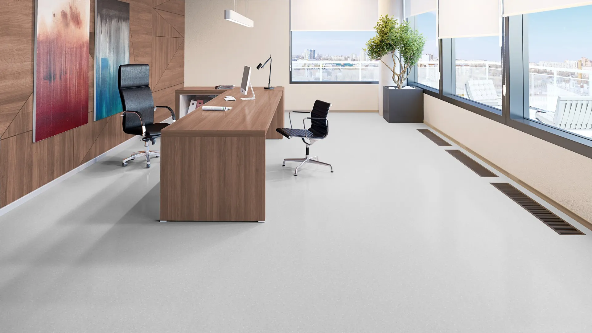 на пол / Коммерческий / для теплого пола / Tarkett / Гомогенный линолеум / Промышленный линолеум / Пожарный линолеум / Класс КМ2 / Толщина 2 мм / Дорогой линолеум / Для офиса / Серый линолеум / Светлый линолеум