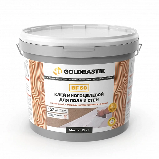 Клей многоцелевой GOLDBASTIK BF 60 13 кг — профессиональное решение для надежной фиксации напольных покрытий и стеновых материалов в условиях Санкт-Петербурга.